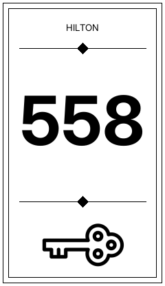 The Hotel Card (Black) generator produces a sleek, minimalist hotel key card image on your Teleport device. It shows the hotel name and room number, and can be easily customized to fit your story or routine.